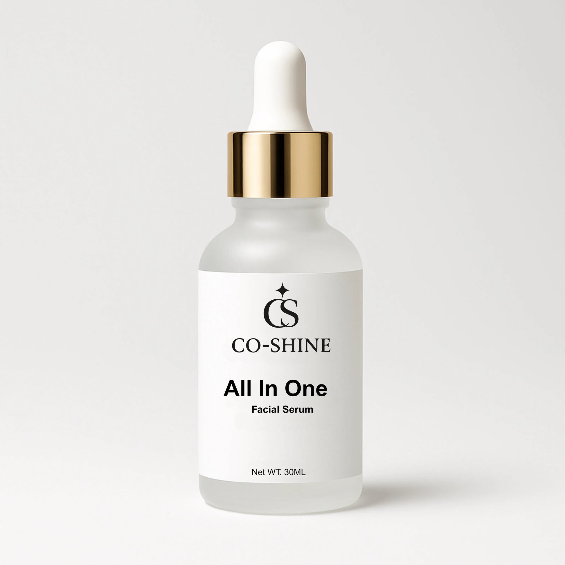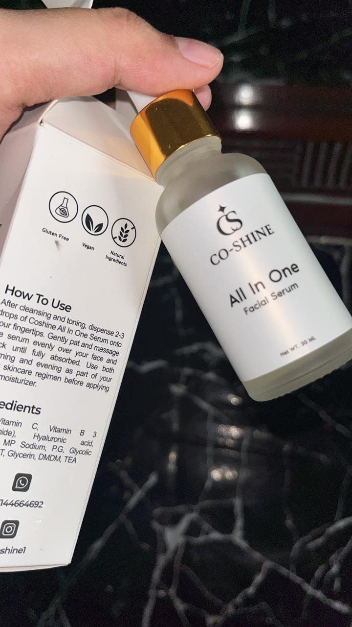 - Take 2–3 drops of Coshine All in One Serum on your fingertips.